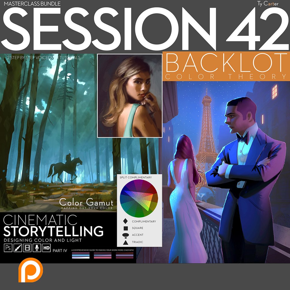 Session 42, Cinematic Storytelling: Designing Light and Color Part IV: "Backlot Color Theory" is a two video session in which we'll explore characters, environments, and world design themes which focus on cinematic techniques applied to art, illustration and games. I'll discuss style coherency as well as art direction techniques to elicit emotional responses to your work based on design decisions.